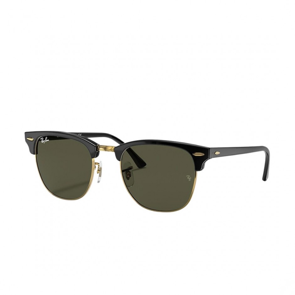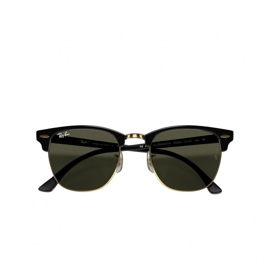 RAY-BAN CLUBMASTER CLASSIC SUNGLASSES POL.BLK ON GLD/G-15 GREEN | 081278