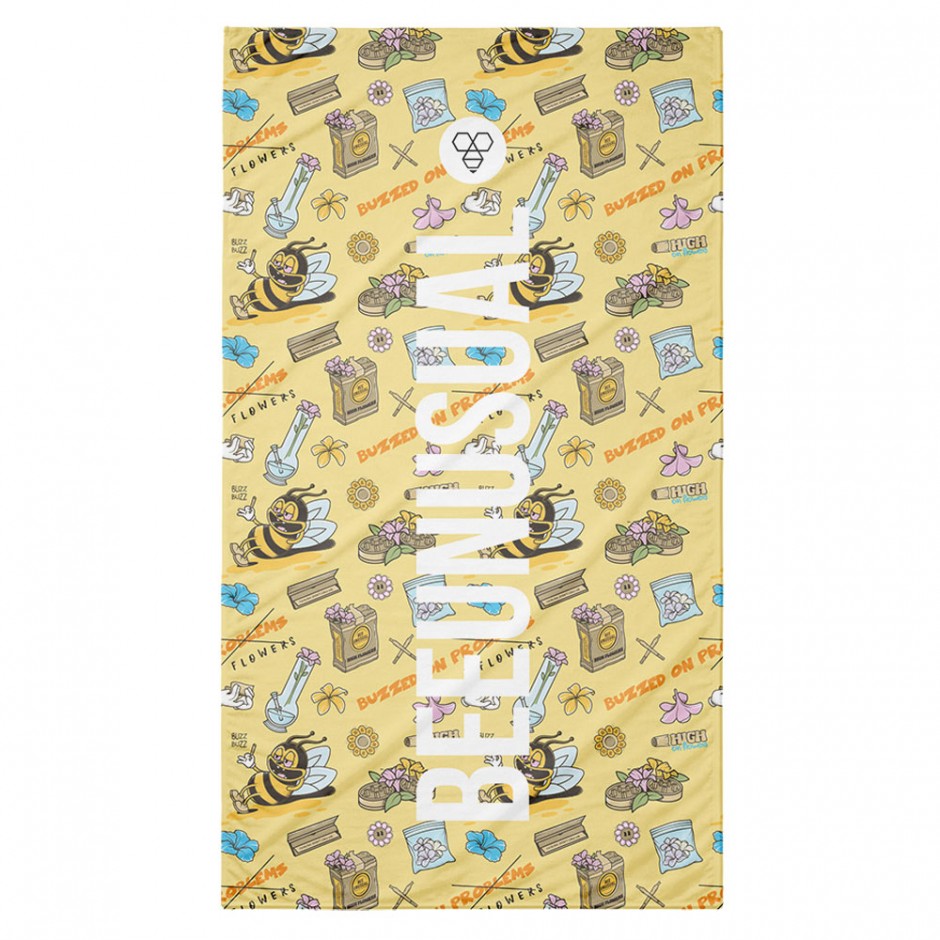 BEE UNUSUAL BUZZED ON FLOWERS BEACH TOWEL FRINGES 100X180 MULTI