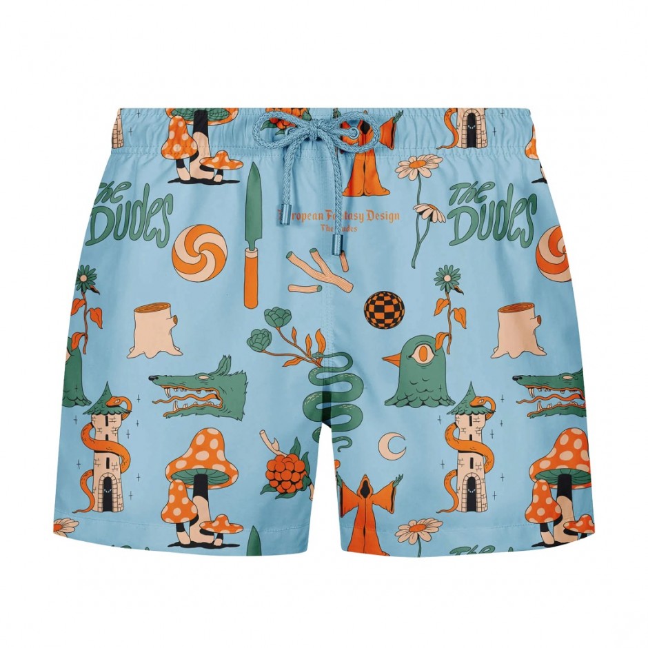 - Ανδρικό μαγιό The Dudes European Fantasy Blue Swim Shorts Multicolor με μοναδικό streetwear σχεδιασμό και καλλιτεχνικό print European Fantasy Blue από τον McBess.