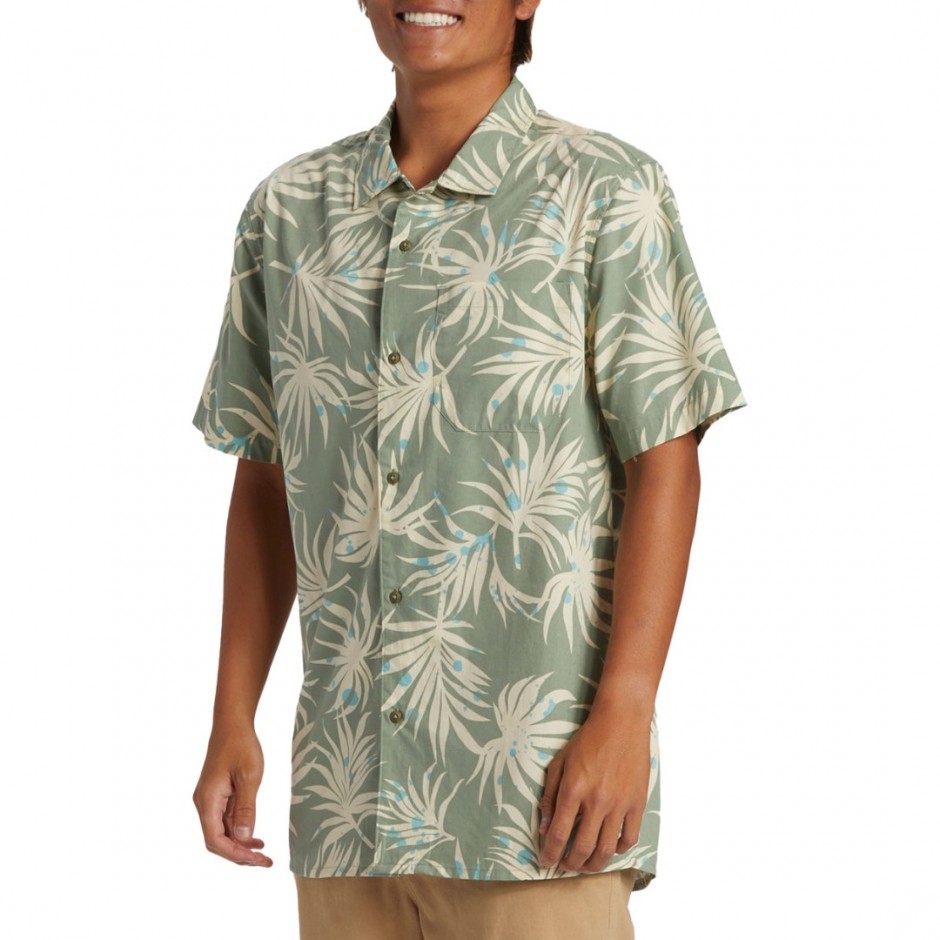 QUIKSILVER BEACH CLUB CASUAL SS SHIRT WOODLAND ABSTR SEA SPR | 072926
