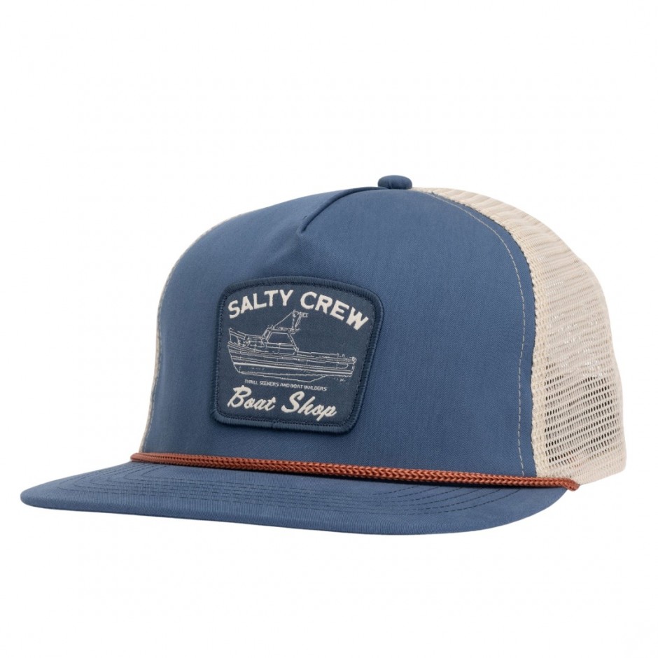 SALTY CREW BOAT SHOP TRUCKER CAP PILOT BLUE | 078710