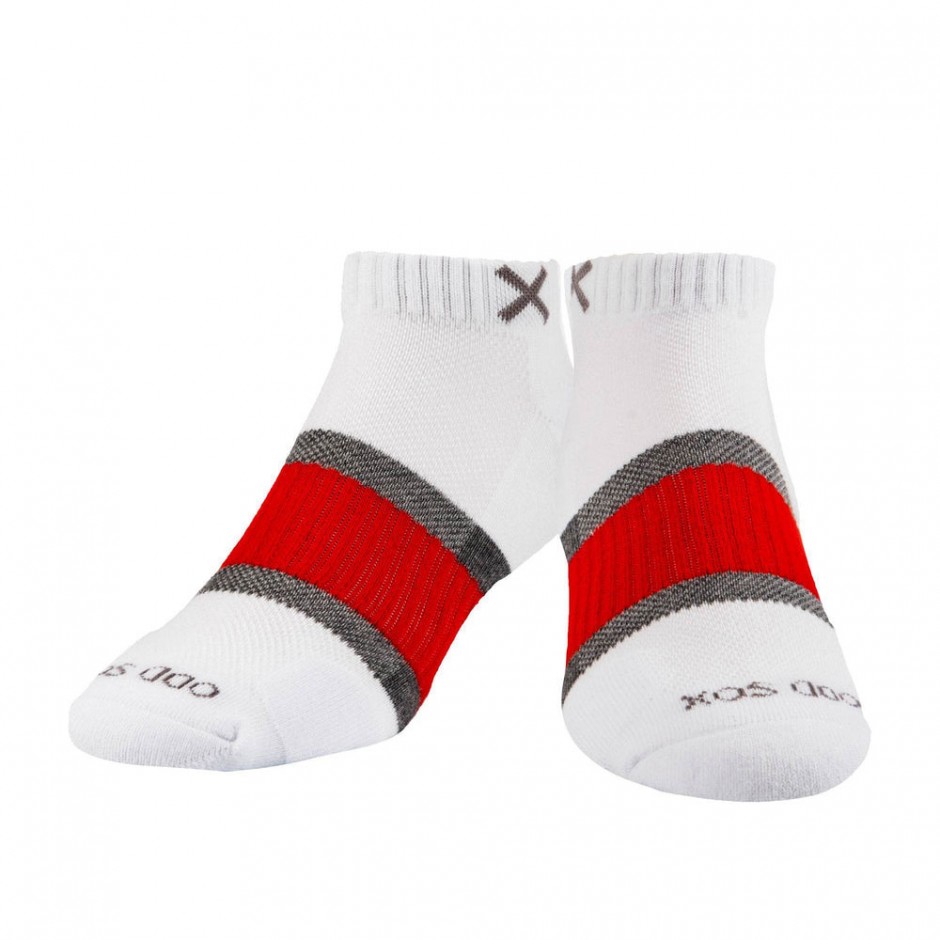 ODD SOCKS BASIX 3 STRIPE WHITE GRAY RED ANKLE CREW SOCKS | 077913