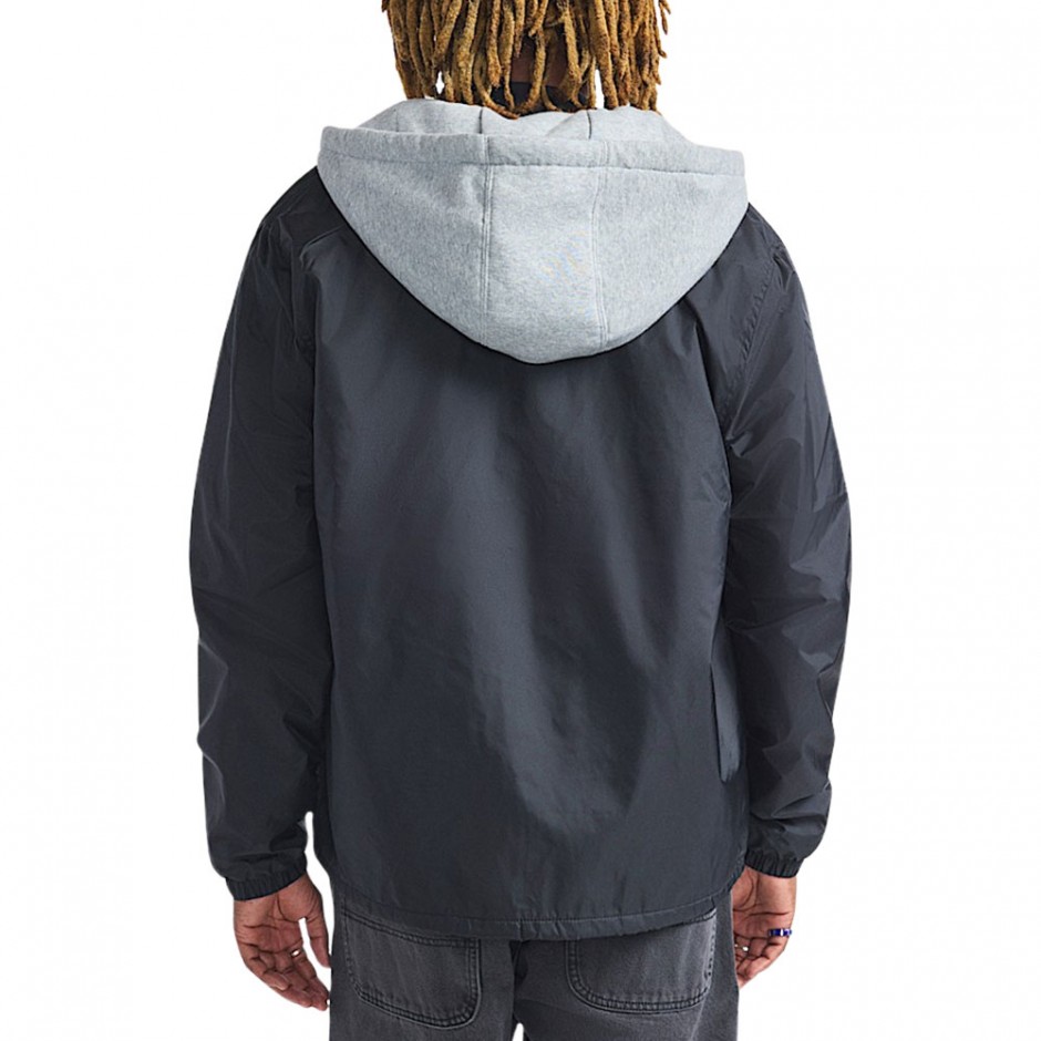 - Men’s hooded coaches-style jacket in classic black