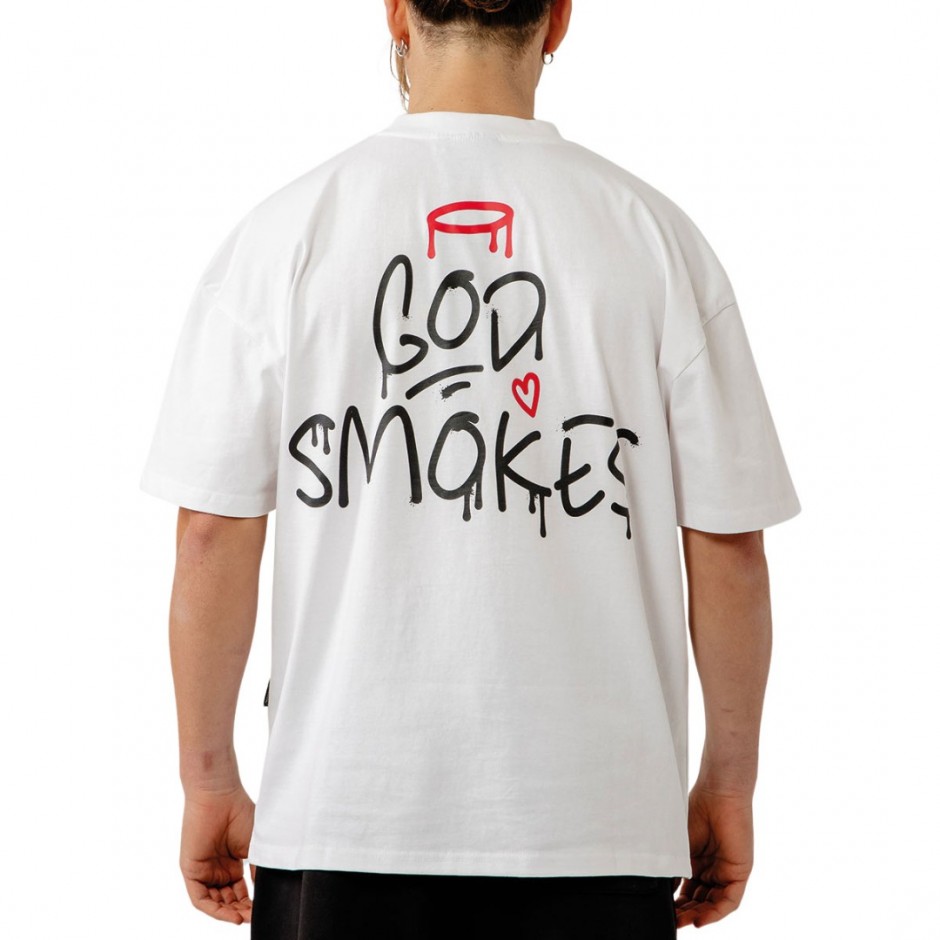 BEE UNUSUAL GOD SMOKES OVERSIZED T-SHIRT WHITE | 081591