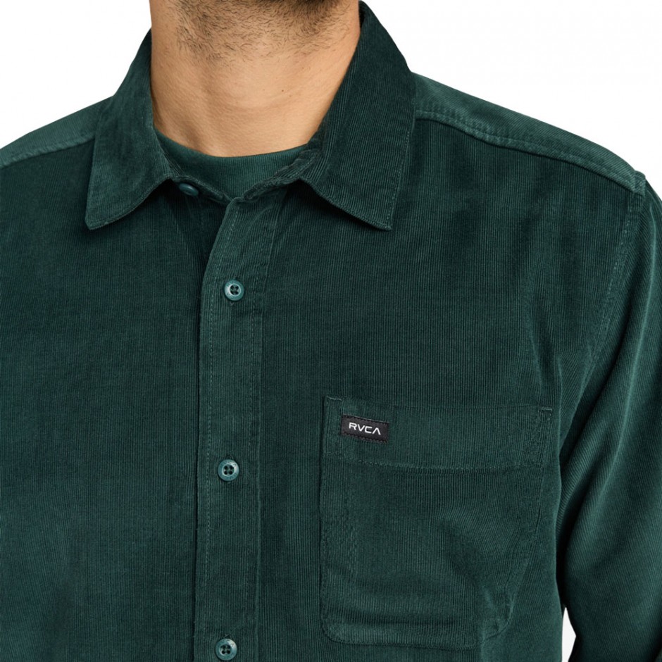 RVCA FREEMAN CORD II LS SHIRT HUNTER GREEN | 084500