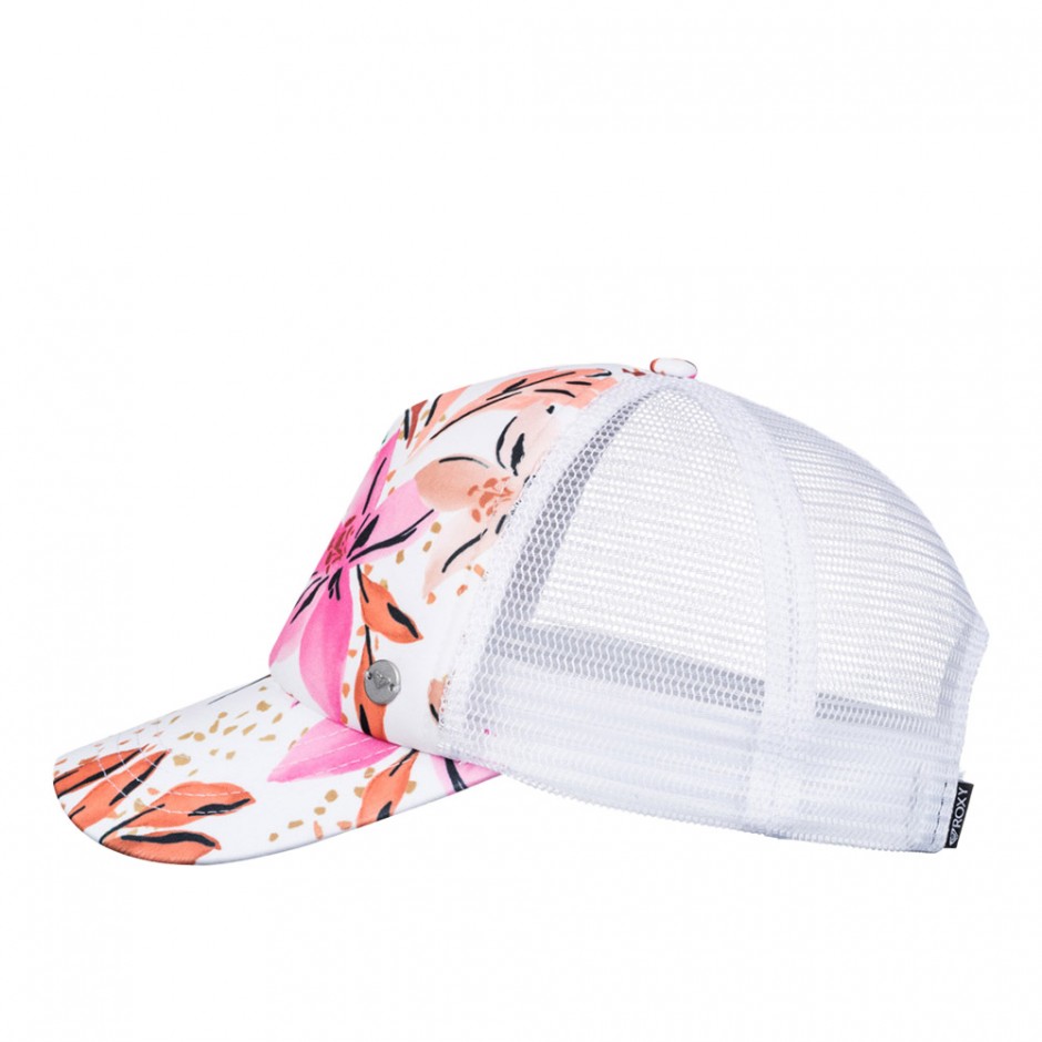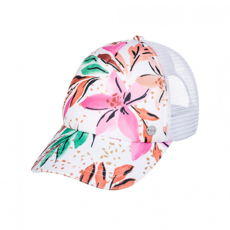 ROXY BEAUTIFUL MORNING TRUCKER CAP WHITE HAPPY TROPICAL SWIM | 073098