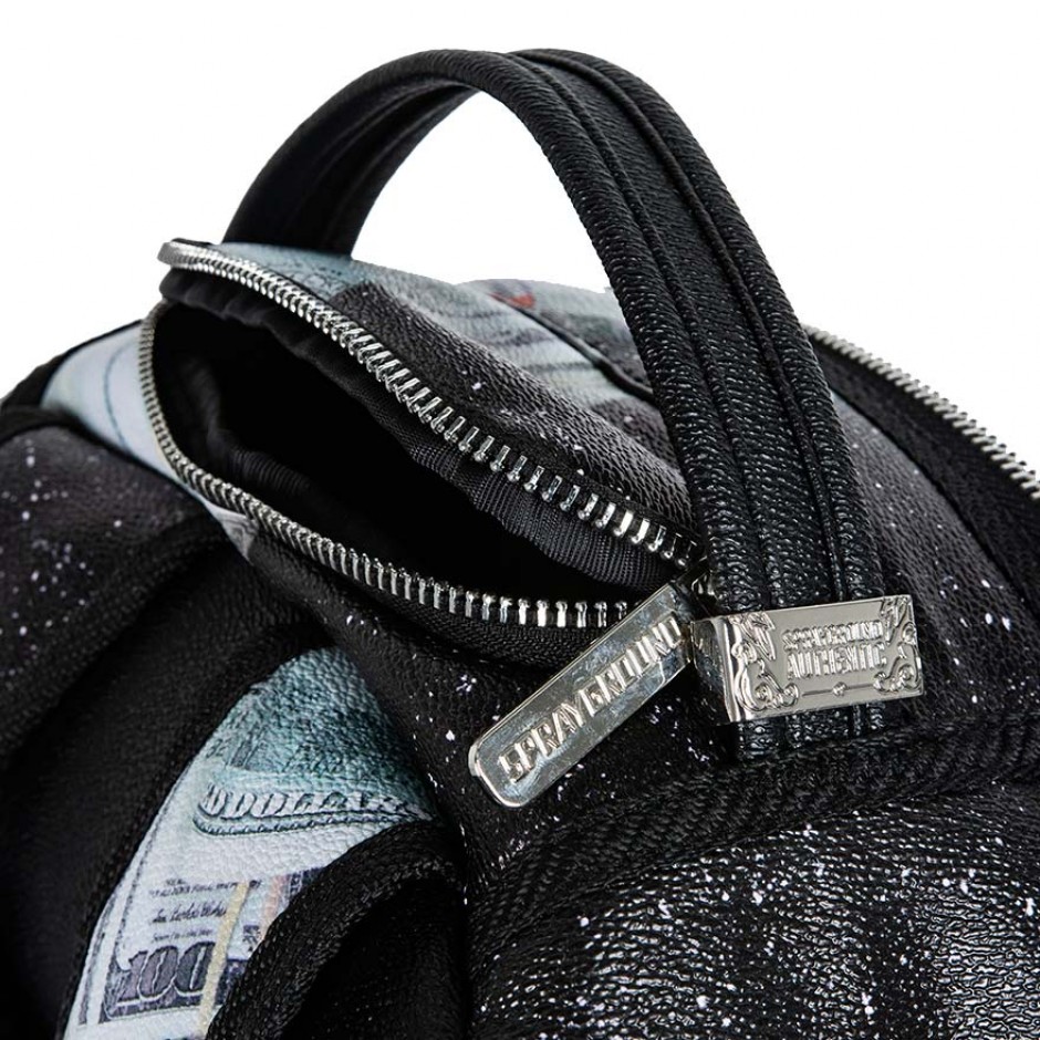 Exterior Dimensions: 45,7 x 15,2 x 29,2cm ∙ Front zipper pocket ∙ Side pockets ∙ Zippered Stash pocket ∙ Ergonomic mesh back padding ∙ Adjustable Straps for custom sizing ∙ Nylon Zippers with Metal Hardware ∙ Metal "Sprayground Authentic" badge ∙ Slide through back sleeve connects to Carry on luggage to free your hands Interior Separate Laptop compartment ∙ Separate Velour sunglass compartment ∙ Mesh organizer pocket Fabric Durable Leatherette water-resistant fabric