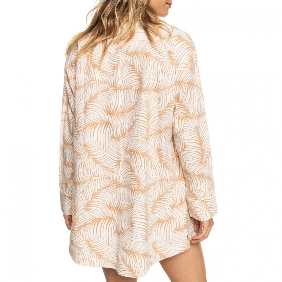 ROXY PRINTED EASY RELAX SHIRT DRESS TOAST PALM TREE | 058155