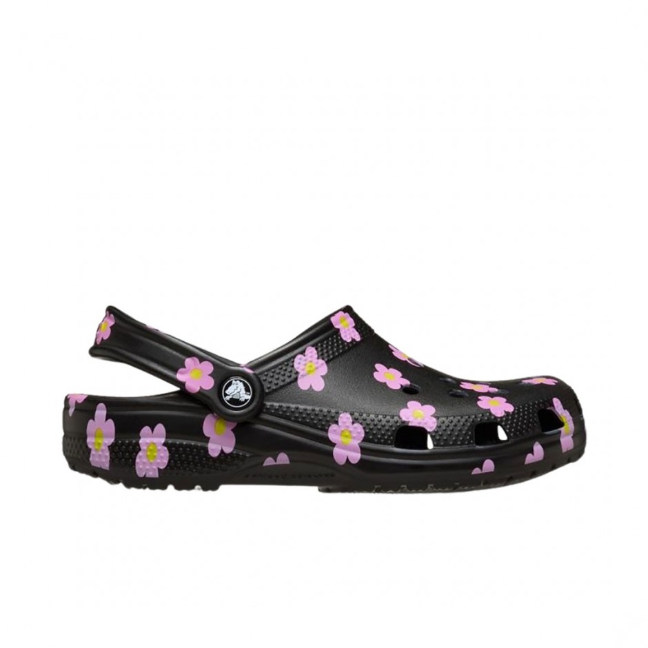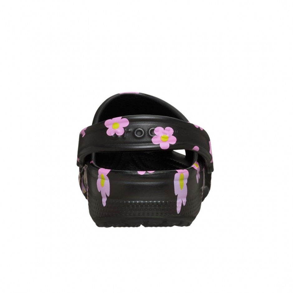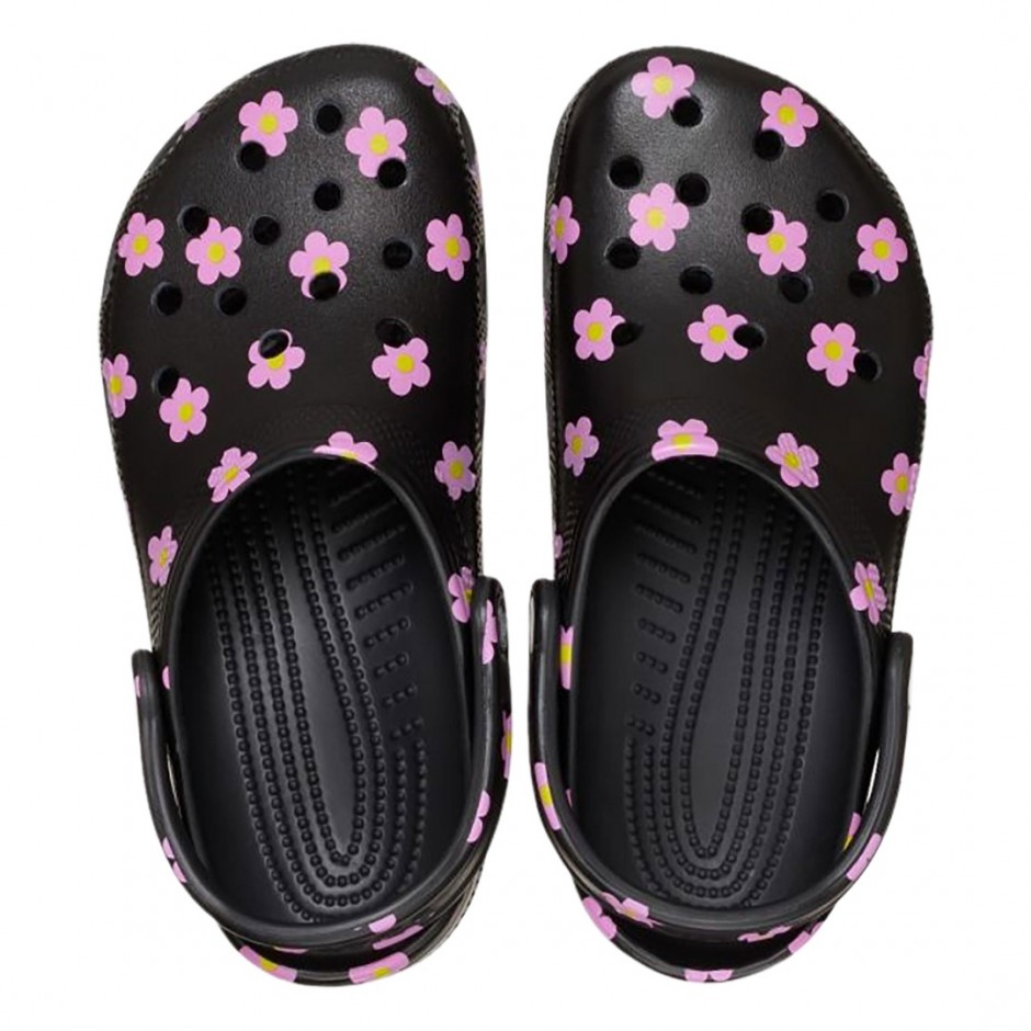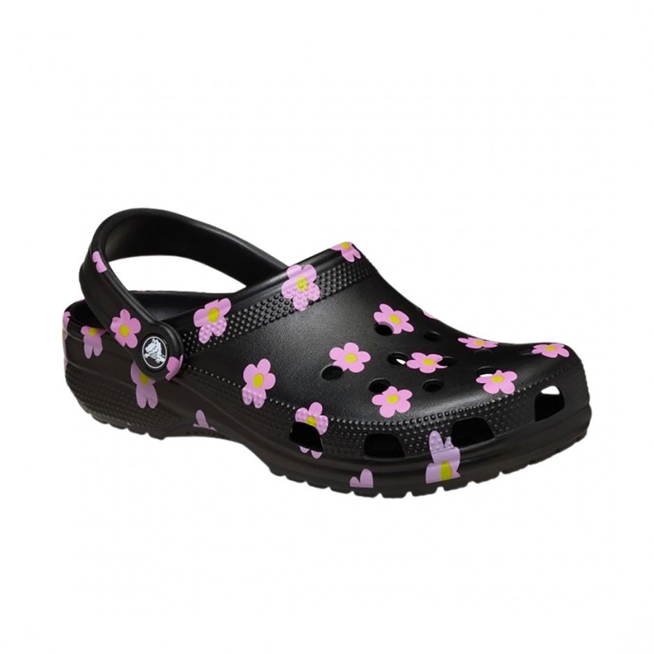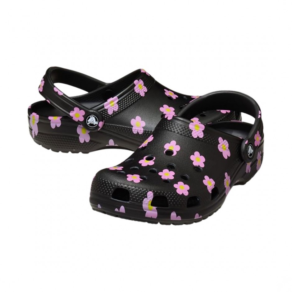 - Γυναικεία Crocs Classic Flower Clogs σε μαύρο χρώμα που συνδυάζουν το iconic clog design με μοντέρνο floral print.