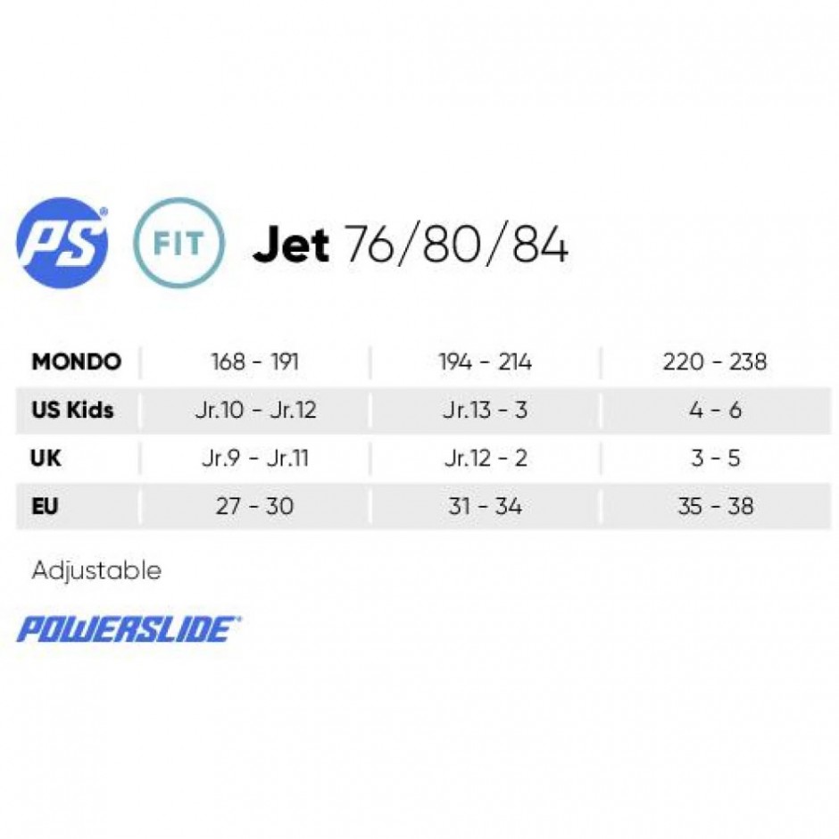 - Ροδάκια: 76χιλ. για μεγέθη 27-30, 80χιλ. για μεγέθη 31-34 και 84χιλ. για μεγέθη 35-38
