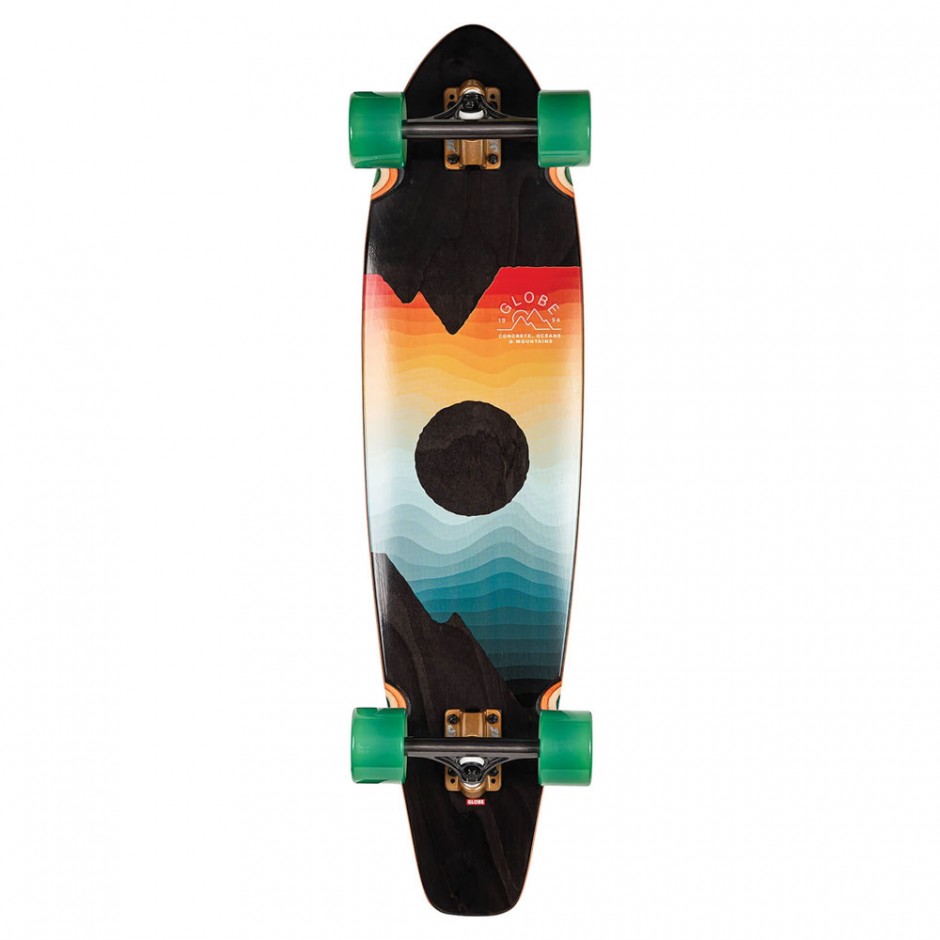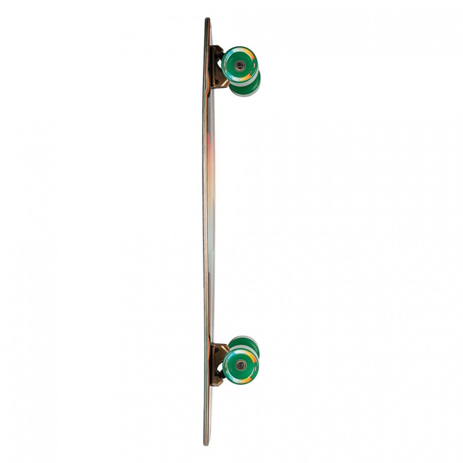 Το Arcadia σε μαύρο χρώμα Maple/Chromeset διατίθεται σε μέγεθος 35,875"x 9" x 22,25"wb. Κλασικό σχήμα cruiser με μακρύ wheelbase χωρίς kick και μεγαλύτερο από το μέσο όρο των τροχών. Έχει Subtle W concave με rocker profile κατασκευασμένο από Resin-8 hard rock maple. Διαθέτει 150mm Slant reverse kingpin trucks και 74mm/78a wheels.