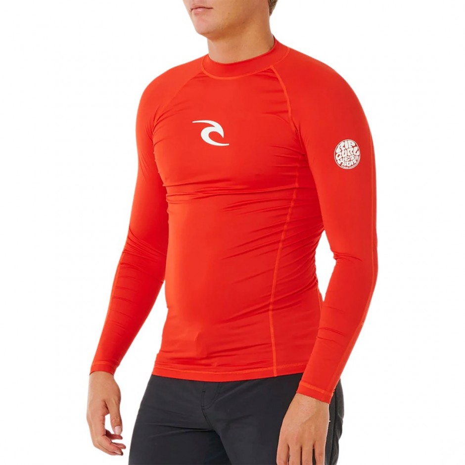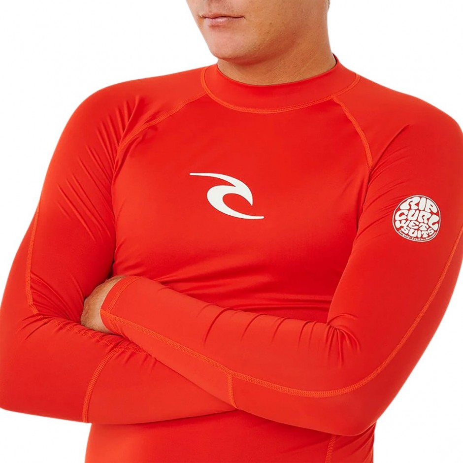 - Ανδρικό rash vest Rip Curl Waves UPF50 Performance σε lava red απόχρωση ιδανικό για surf και water sports.