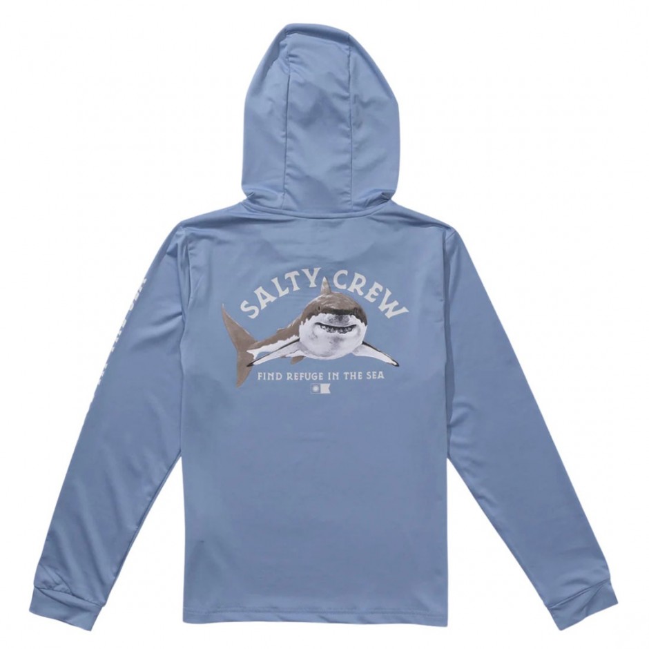 SALTY CREW LURKING BOYS LS HOODED SUNSHIRT MARINE BLUE | 075221