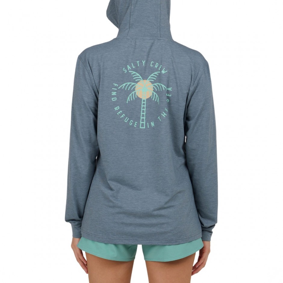 SALTY CREW QUEEN PALM W LS TECH HOODIE FIN BLUE | 075326