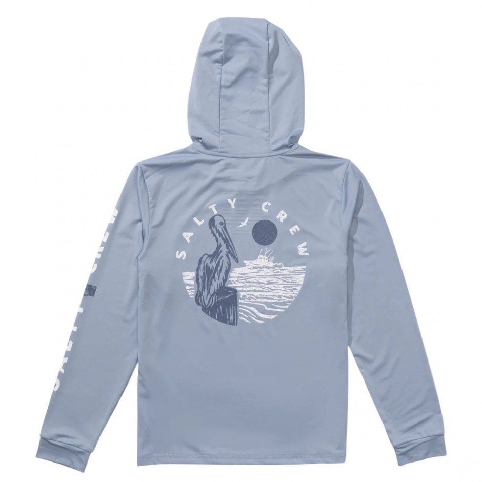 SALTY CREW STAKE OUT BOYS LS HOODED SUNSHIRT BLUE FOG | 075439